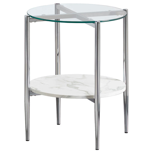 Coaster Z2 PremiumIntroduce stylish allure with this modern end table, showcasing an hourglass-inspired base in a polished silver finish. Constructed with stainless ...