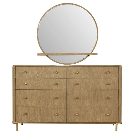 Step into a world of understated elegance with the mid-century modern eight-drawer dresser, its wire-brushed sand wash finish providing a serene ba...