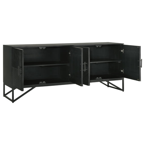 Coaster Z2 PremiumEnhance your dining or living space with this sleek black sideboard, elegantly shaped with subtle arches and showcasing framed fluted tempered glas...