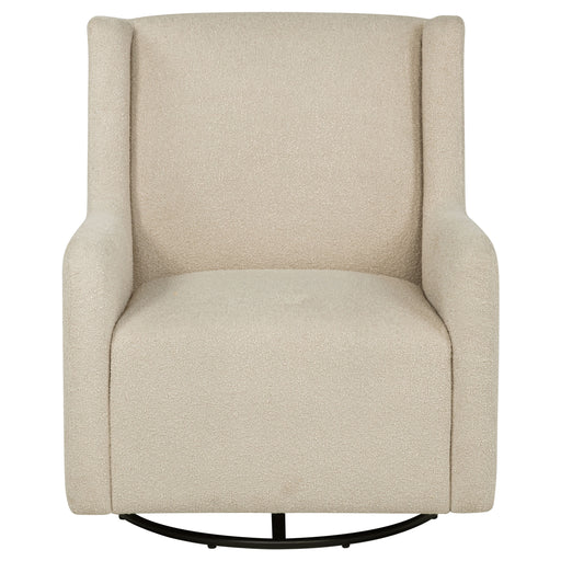 This swivel accent chair complements living room décor with its neutral fabric and streamlined silhouette. Perfect as lounge seating or an occasio...