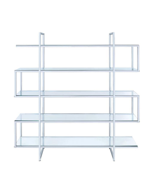 Jump on a trendy, modern bandwagon. Refresh a contemporary space with a stylish piece designed to organize and display. This four-tier bookcase off...