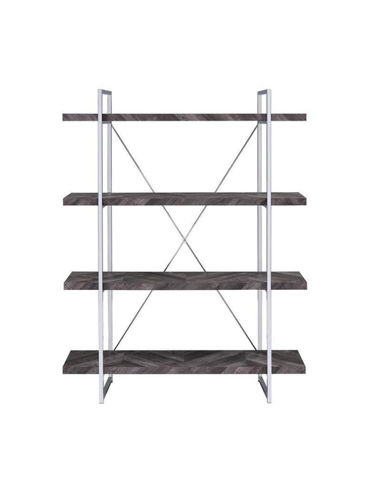 Grimma 4-shelf Bookcase Rustic Grey Herringbone