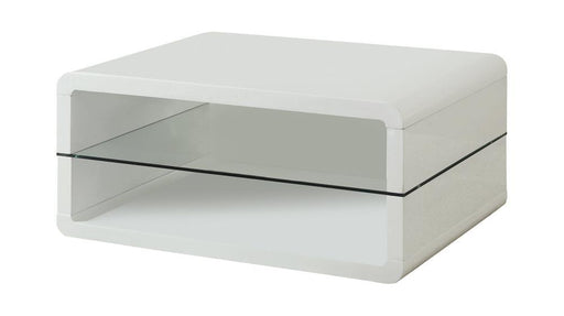 Coaster Z2 PremiumThis ultra-modern rectangular coffee table combines a sleek white high-gloss finish with the sophistication of clear tempered glass. Crafted from e...