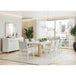 AICO Furniture Palm Gate Side Chair (Set of 2) in Cloud White 9086003-108. Complement your dining ensemble with the Palm Gate side chair. Designed for comfort with an upholstered back and seat, its Japan gold accents add a dash of elegance.