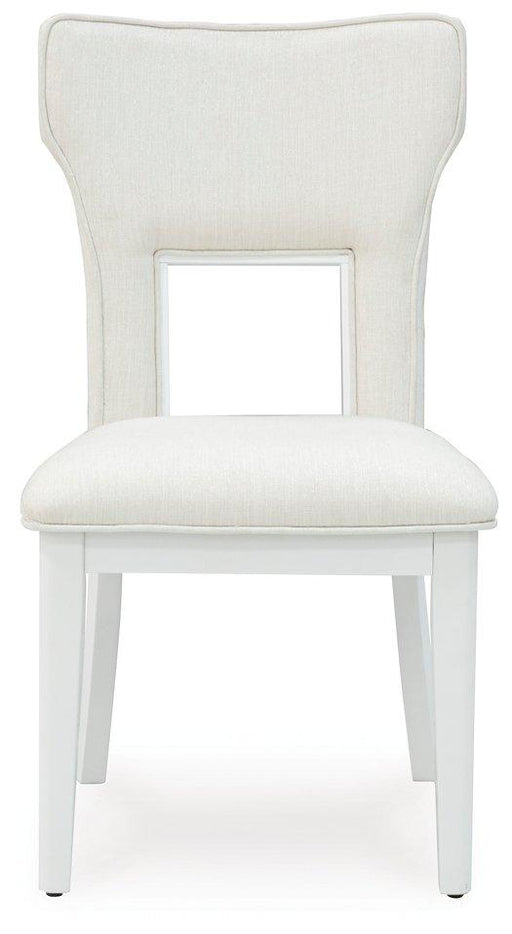 Bring light to your dining area with the clean lines and bright two-tone finish of this dining package. The round dining table, with stylized saber...
