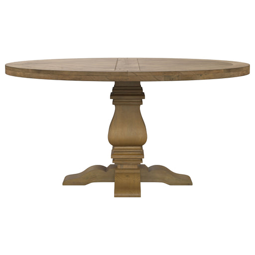 Build a gathering space you'll love around a traditional five-piece dining set. Featuring a rustic smoke wood finish, the set includes a round tabl...