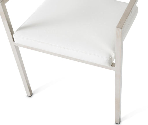 State St Collection by Aico Furniture Glossy White finish Elongated acrylic back panel Stainless steel arms and legs Sold in set of 2